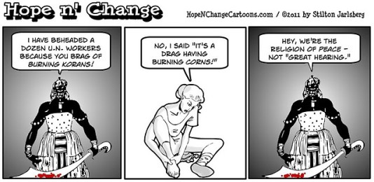 My comments: Who doesn’t enjoy cooking delicious wienies over a crackling Koran? Those sheet-heads need to loosen up a little, and somebody better tell Jethro his 15 minutes of fame were up months ago.